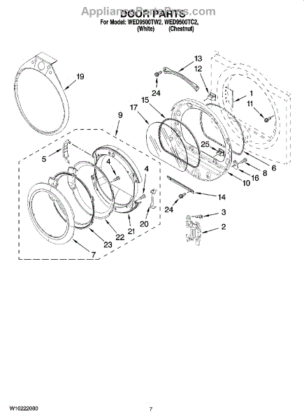 The Door Hinge is an OEM replacement part for Whirlpool dryers. Supporting the access door to the drum, the hinge provides smooth rotational movement during loading and unloading cycles. Causes relate to bearing degradation from constant friction, bent hinge plates from impacts over time, or stripped internal teeth losing synchronized motion. Symptoms of a faulty hinge can include: