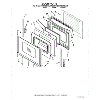 Decorative trim piece for range oven door side edge. Replace if cracked, broken, or missing after disassembly. Left-hand white trim installs along door.