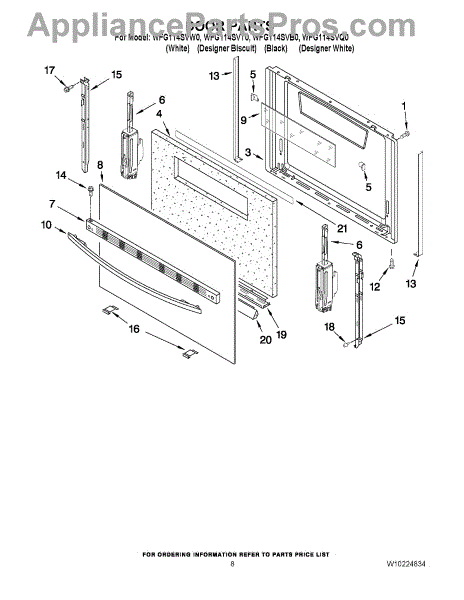 Color: Biscuit. Outer door glass. For white use WP98017961W. For black use WP98017961B.