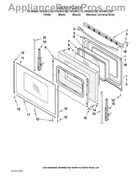 Parts for Whirlpool WFG361LVQ0: 05 - Door Parts