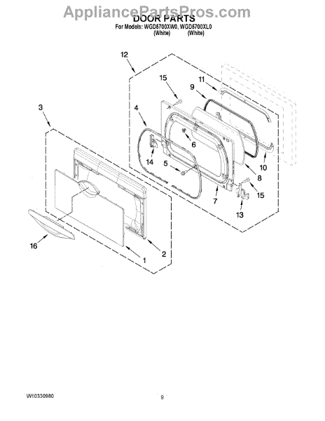 This cabinet door assembly replaces a damaged or dented appliance door to restore appearance and proper closure. It provides the exterior panel and mounting points needed to secure and seal the appliance compartment. What it does