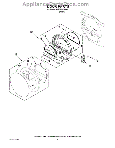 Parts for Whirlpool WGD9050XW0: 05 - Door Parts
