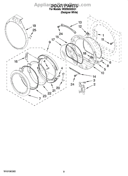 The Door Hinge is an OEM replacement part for Whirlpool dryers. Supporting the access door to the drum, the hinge provides smooth rotational movement during loading and unloading cycles. Causes relate to bearing degradation from constant friction, bent hinge plates from impacts over time, or stripped internal teeth losing synchronized motion. Symptoms of a faulty hinge can include: