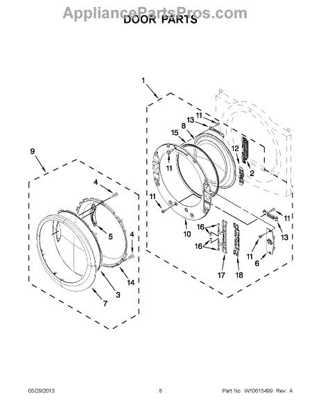 The Door Hinge is an OEM replacement part for Whirlpool dryers. Responsible for securely attaching the dryer door, these hinges play a vital role in usability. Proper functioning of the hinge is crucial for maintaining the door’s alignment and ensuring it closes tightly to retain heat during the drying cycles. Causes of a bad hinge can include normal wear and tear over prolonged use cycles. Excess weight or strain on the door from heavy loads could damage hinge components over time. Symptoms of a bad hinge include: