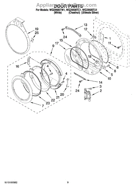 The Door Hinge is an OEM replacement part for Whirlpool dryers. Supporting the access door to the drum, the hinge provides smooth rotational movement during loading and unloading cycles. Causes relate to bearing degradation from constant friction, bent hinge plates from impacts over time, or stripped internal teeth losing synchronized motion. Symptoms of a faulty hinge can include: