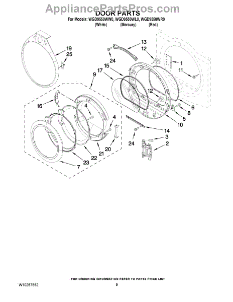 Parts for Whirlpool WGD9550WW0: 05 - Door Parts