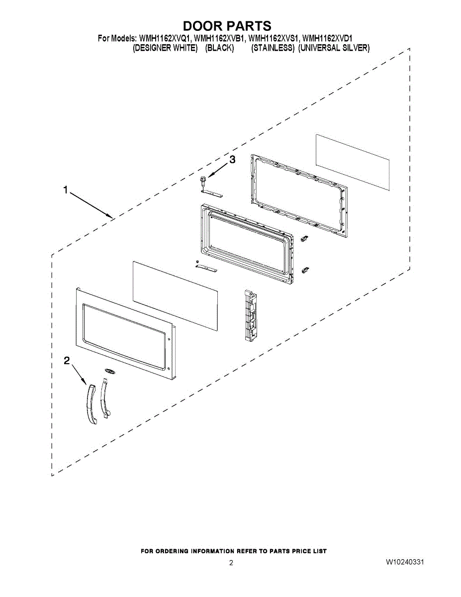 This white microwave door replaces a damaged or worn outer door assembly to restore appearance and safe operation. It provides the exterior panel and handle mounting surface for a finished cabinet look. What it does: