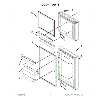 The Door Bin is an OEM replacement part for Whirlpool refrigerators. This bin attaches to the inside of the refrigerator door, providing convenient storage for smaller items like condiments, jars, and bottles.