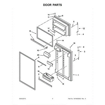 The Door Shelf is an OEM replacement part for Whirlpool refrigerators. It is responsible for providing additional storage space inside the refrigerator door. The shelf features an open design that allows smaller items like condiments and snacks to be easily accessed.