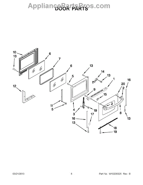 The Oven Door Hinge is an OEM replacement part for Whirlpool ovens and ranges. It is the mechanism that allows the oven door to securely and safely open and close. The hinge components work together to provide an even and balanced movement, while also carrying the weight of the door during operation. Causes of a bad oven door hinge can include regular wear and tear from frequent use, physical damage due to accidental impacts, or rust and corrosion over time. Symptoms of a bad oven door hinge include: