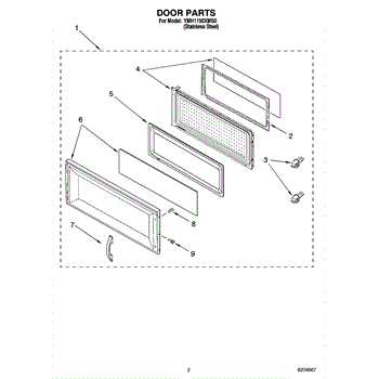 Color: Black. This is the panel located between the inner and outer microwave door panel.
