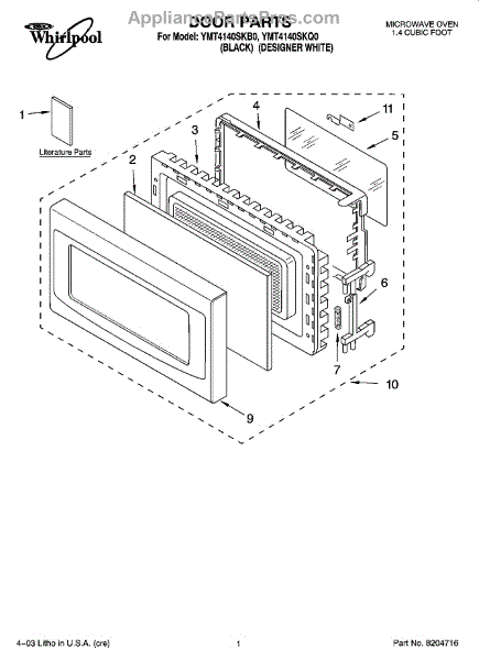 Parts for Whirlpool YMT4140SKB0: 01 - Door Parts