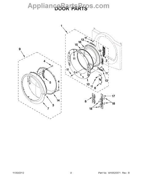 Parts for Whirlpool YWED88HEAC0: 04 - Door Parts