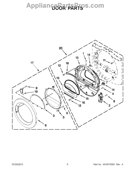 Parts for Whirlpool YWED9050XW2: 03 - Door Parts