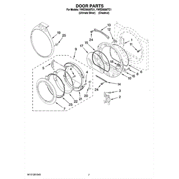 The Door Hinge is an OEM replacement part for Whirlpool dryers. Supporting the access door to the drum, the hinge provides smooth rotational movement during loading and unloading cycles. Causes relate to bearing degradation from constant friction, bent hinge plates from impacts over time, or stripped internal teeth losing synchronized motion. Symptoms of a faulty hinge can include: