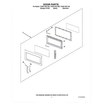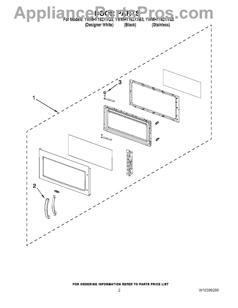 This white microwave door replaces a damaged or worn outer door assembly to restore appearance and safe operation. It provides the exterior panel and handle mounting surface for a finished cabinet look. What it does: