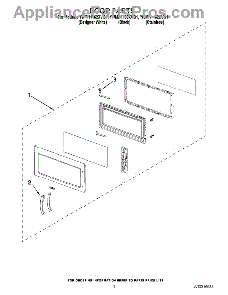 Parts for Whirlpool YWMH1162XVS1: 02 - Door Parts