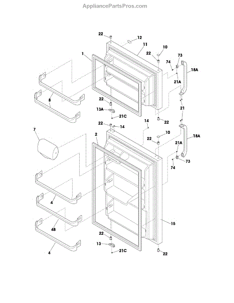 Parts for White Westinghouse WRT8G3EWX: Door Parts