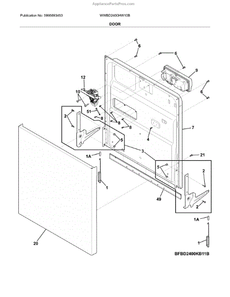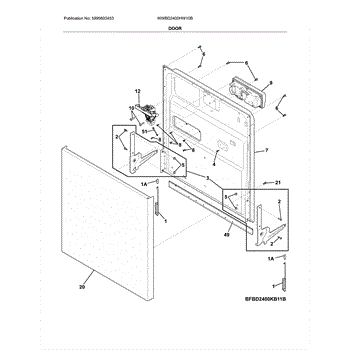 The Door Hinge Kit is an OEM replacement part for Frigidaire dishwashers. Located on the left and right side of the dishwasher doorway, the hinges are responsible for supporting the weight of the dishwasher door and facilitating smooth opening and closing. The kit is composed of two brackets and all of the extra hardware needed to install it on a dryer. Causes of failure include wear and tear of hinge parts over many door openings and closings, damage due to overload or misuse, and deterioration of hinge components exposed to moisture. Symptoms include: