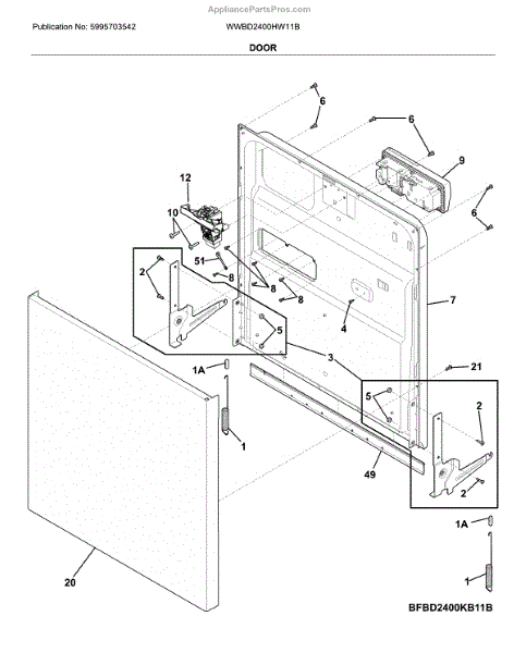 The Door Hinge Kit is an OEM replacement part for Frigidaire dishwashers. Located on the left and right side of the dishwasher doorway, the hinges are responsible for supporting the weight of the dishwasher door and facilitating smooth opening and closing. The kit is composed of two brackets and all of the extra hardware needed to install it on a dryer. Causes of failure include wear and tear of hinge parts over many door openings and closings, damage due to overload or misuse, and deterioration of hinge components exposed to moisture. Symptoms include: