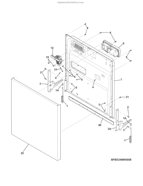 The Door Hinge Kit is an OEM replacement part for Frigidaire dishwashers. Located on the left and right side of the dishwasher doorway, the hinges are responsible for supporting the weight of the dishwasher door and facilitating smooth opening and closing. The kit is composed of two brackets and all of the extra hardware needed to install it on a dryer. Causes of failure include wear and tear of hinge parts over many door openings and closings, damage due to overload or misuse, and deterioration of hinge components exposed to moisture. Symptoms include:
