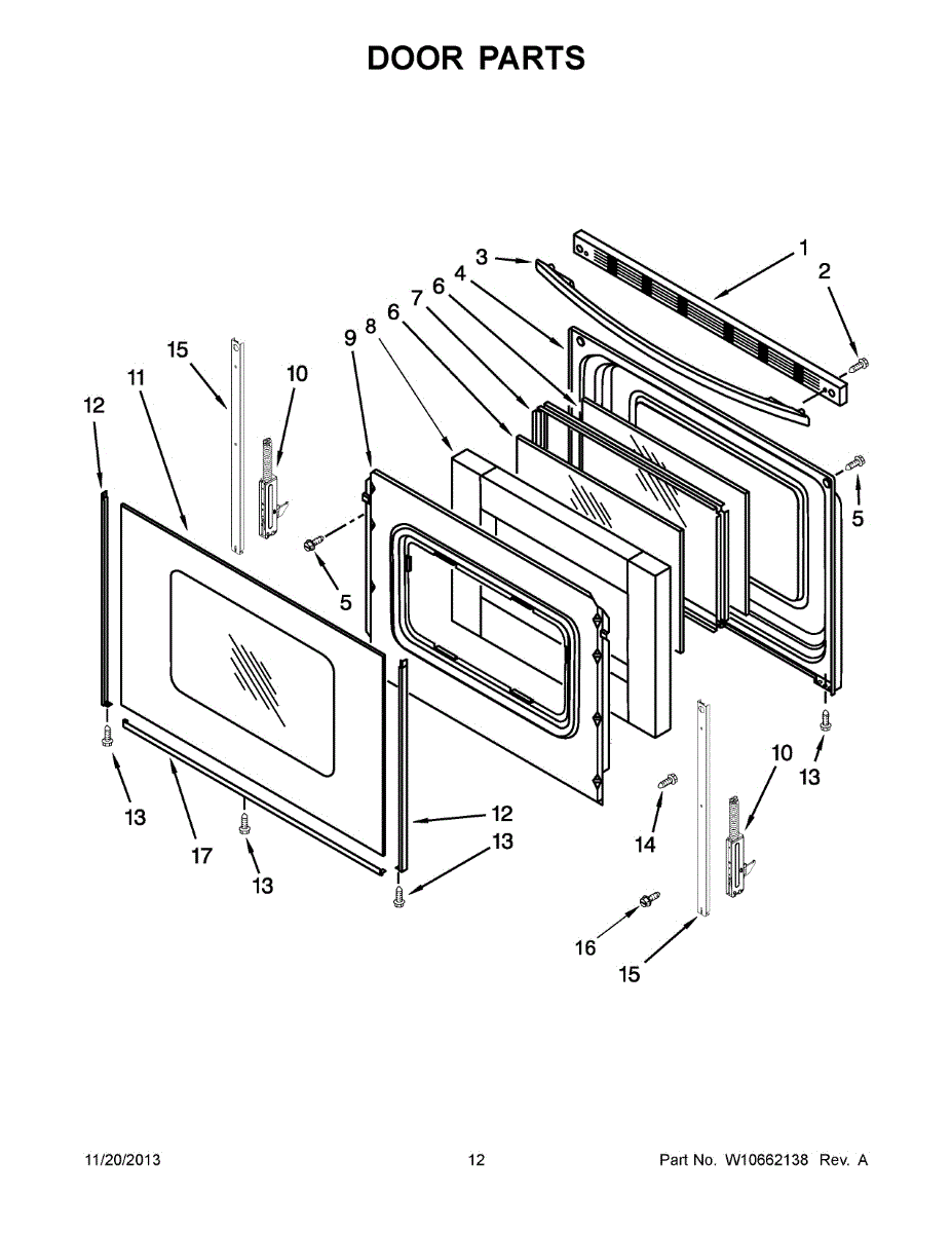 The Door Trim is an OEM replacement part for Whirlpool ranges. It covers the outer edge of the oven door, protecting it from wear and dust while retaining heat and improving aesthetics.