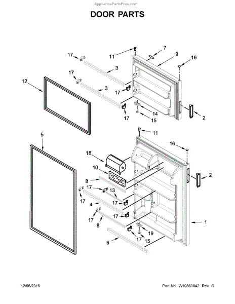 The Door trim is an OEM replacement part for Whirlpool refrigerators. It provides a sturdy support for storing items on the door, providing convenient access to frequently used condiments, beverages, and other essentials. This door shelf bar ensures that your items are securely held in place, preventing them from falling or shifting during opening and closing of the refrigerator door.