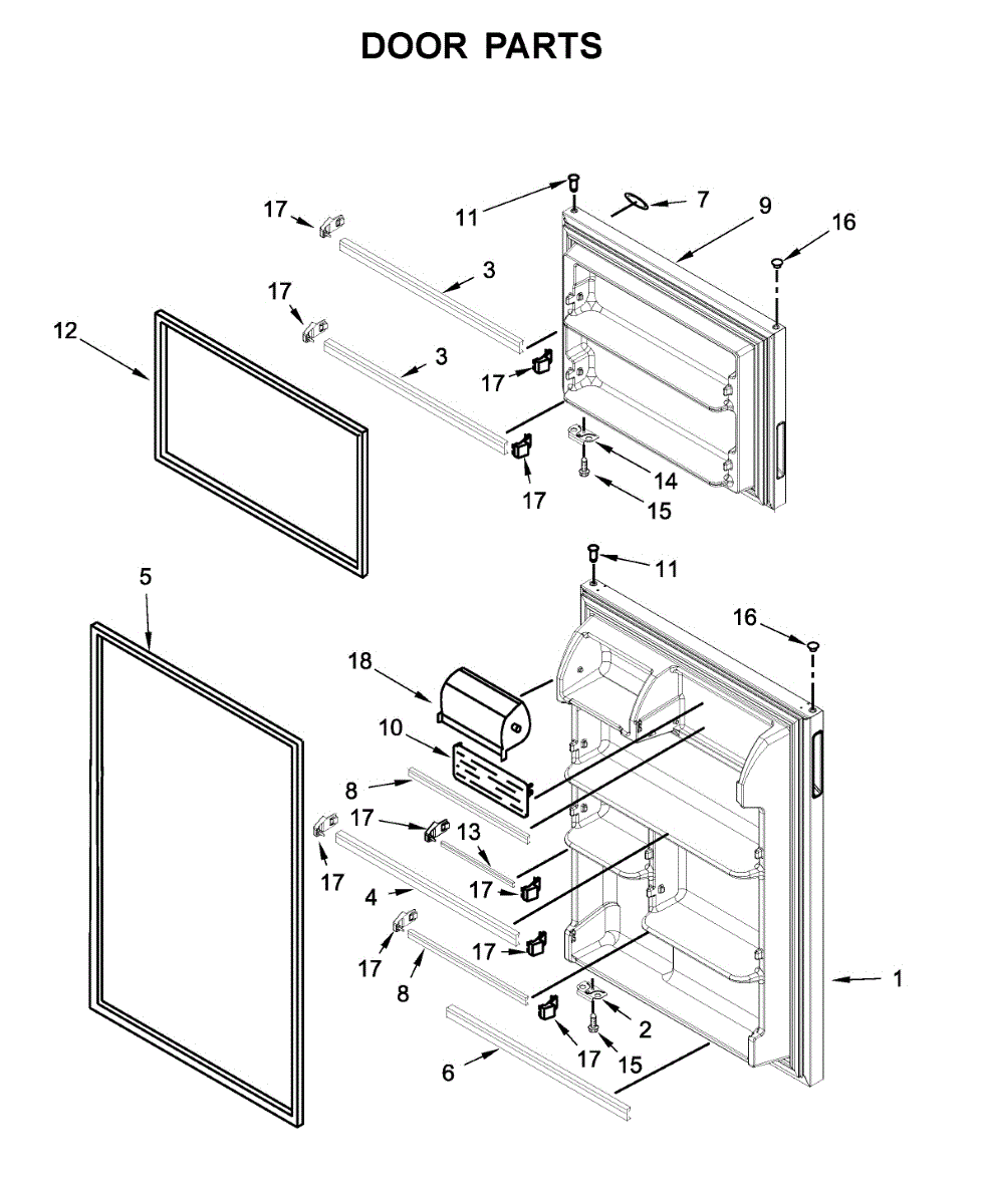 Replace your cracked, damaged, or warped refrigerator freezer door assembly. This black door restores the look and seal of your top-mount freezer.