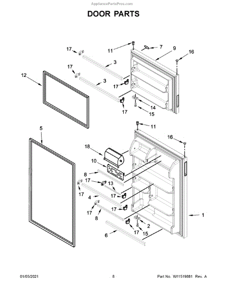 Replace your cracked, damaged, or warped refrigerator freezer door assembly. This black door restores the look and seal of your top-mount freezer.