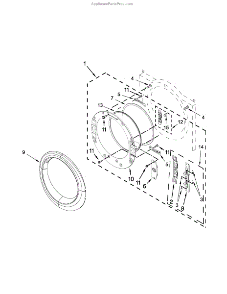 Causes of a bad dryer door catch can include normal wear and tear from frequent use, accidental damage, or deformation of the catch or latch that prevents proper engagement. Over time, the door catch can become loose or break, necessitating replacement to maintain the dryer's performance and safety.