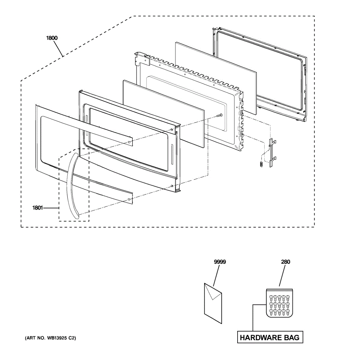 The Microwave Stainless Steel Handle Assembly is an OEM part for GE built-in microwave ovens.