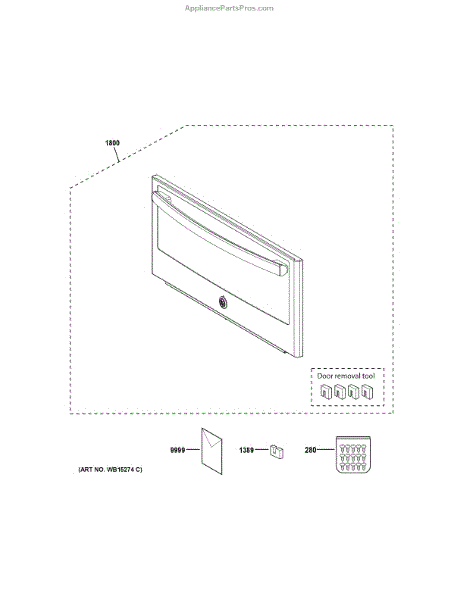 The Door Removal Tool is an OEM replacement part for GE microwave ovens. It is a specialized tool designed to assist in the safe and proper removal of the microwave door. This tool is essential for servicing, repairing, or replacing components within the microwave cavity, ensuring that the door can be securely detached and reattached without causing any damage.
