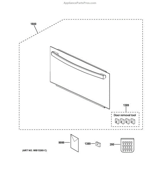 The Door Removal Tool is an OEM replacement part for GE microwave ovens. It is a specialized tool designed to assist in the safe and proper removal of the microwave door. This tool is essential for servicing, repairing, or replacing components within the microwave cavity, ensuring that the door can be securely detached and reattached without causing any damage.