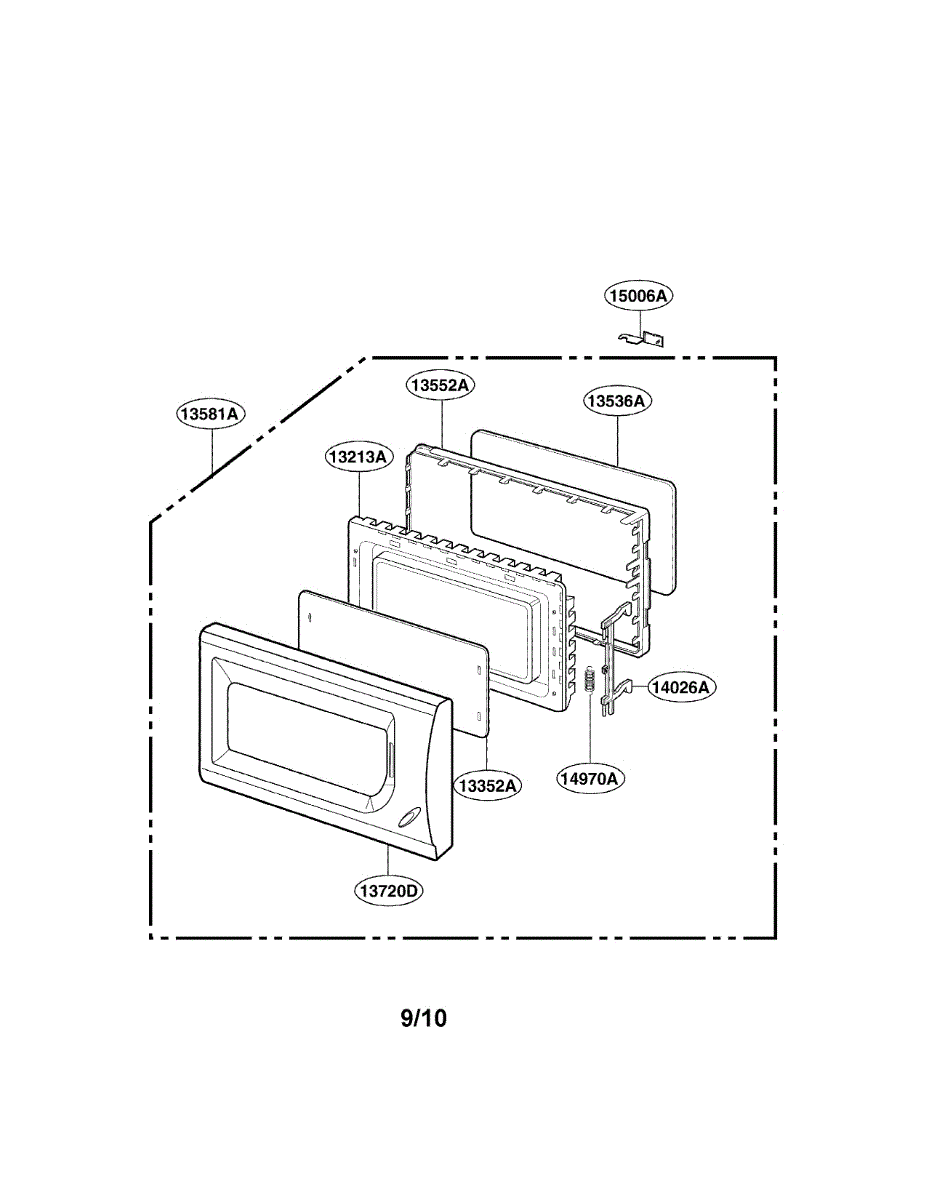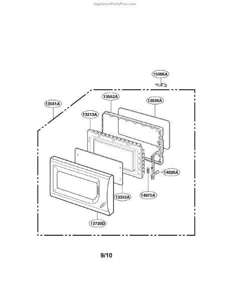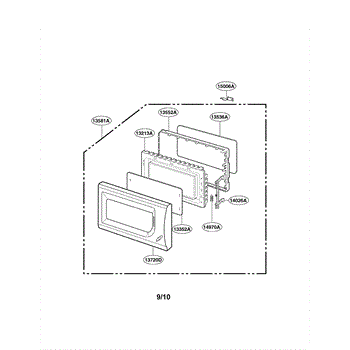 This door latch assembly for a microwave engages the door hooks and actuates the interlock switches so the unit recognizes a closed door, restoring proper latching and helping ensure the oven only operates when securely shut.
