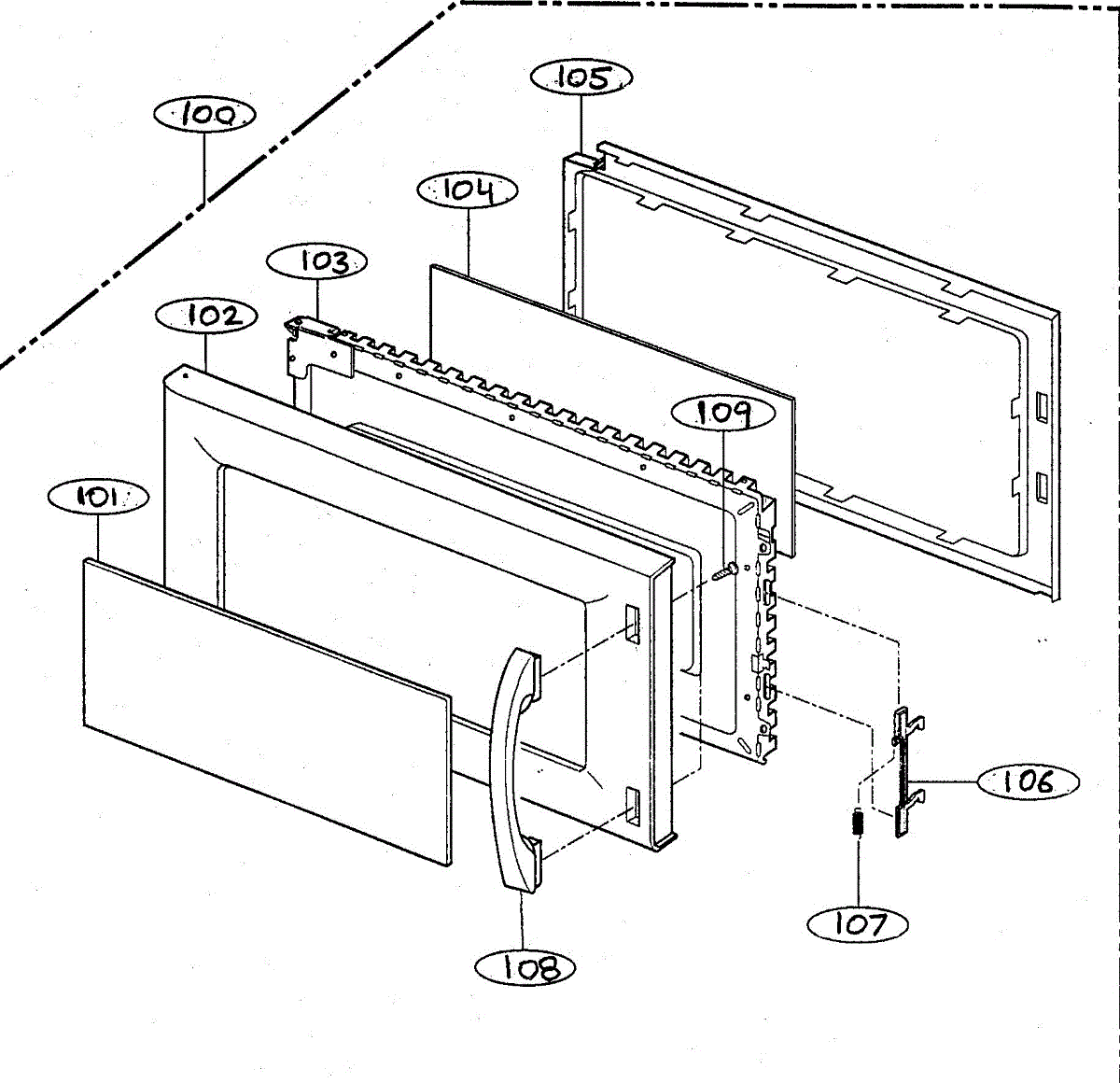 Plastic film covers holes in the microwave inner door frame. Replace if bubbled, burned, cracked, or peeling. Attaches to door glass assembly.