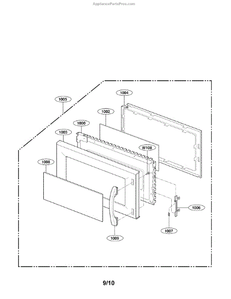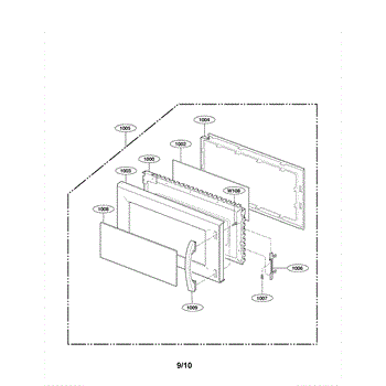 This is the inner door frame assembly for a microwave oven. It provides the structural support for the door's window, trim, handle, and latch so the door aligns and closes properly and the interlock switches engage.