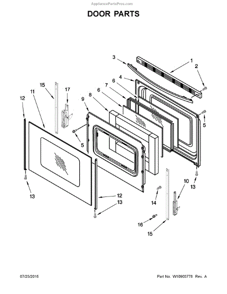 This frame surrounds and supports the window glass in your oven door, keeping the glass secure and aligned. Replace a bent or corroded frame to address loose glass and restore the door's proper fit and clean appearance.
