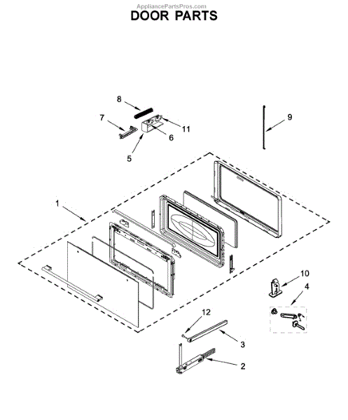 This is a complete microwave door assembly that restores a damaged, cracked, or non-closing door to proper operation and helps the oven seal heat and steam inside. It fits as a direct-replacement door assembly. What it does: