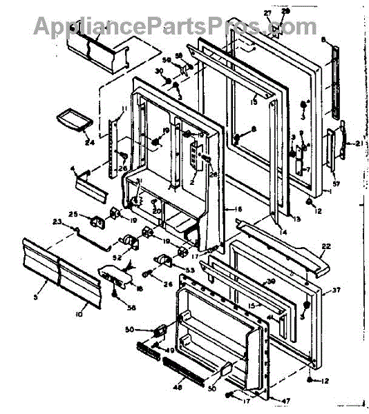 Parts for Kenmore 106.6657624 (1066657624, 106 6657624): Door Parts