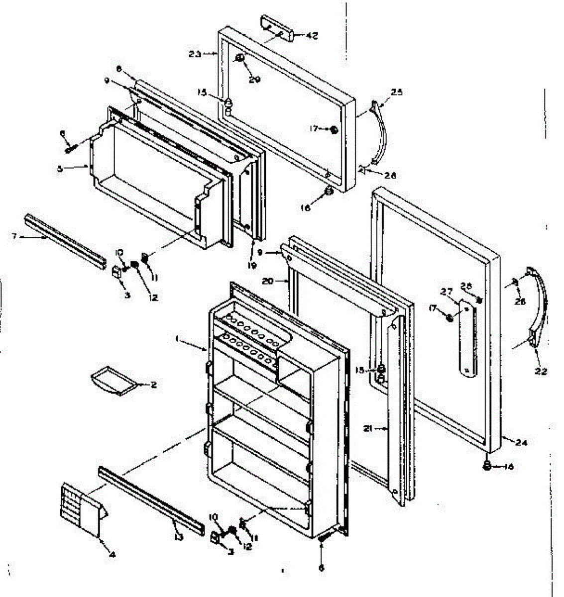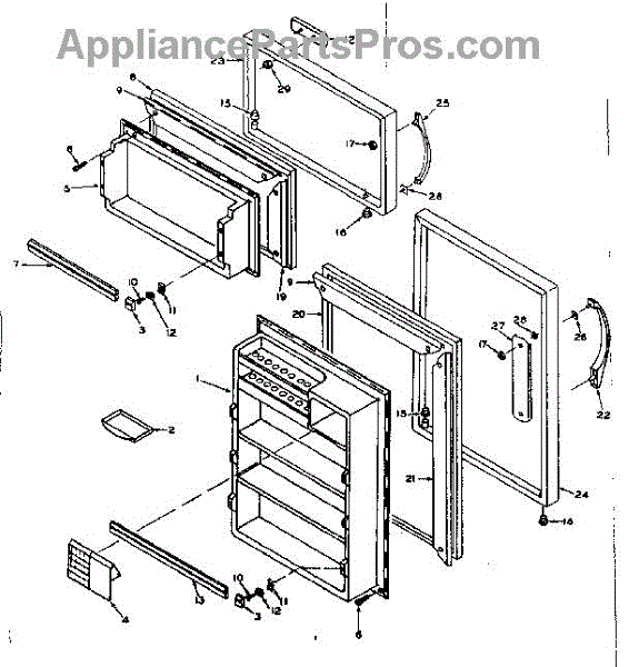 Parts for Kenmore 106.6674232 (1066674232, 106 6674232): Door Parts