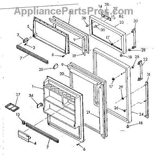 Parts for Kenmore 106.6686241 (1066686241, 106 6686241): Door Parts