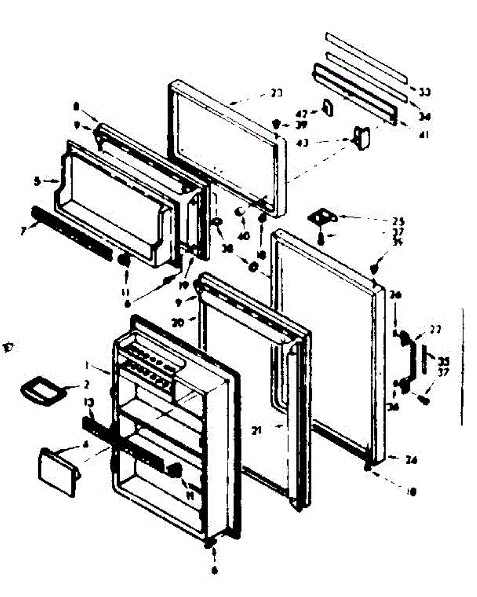 Parts for Kenmore 106.6694221 (1066694221, 106 6694221): Door Parts