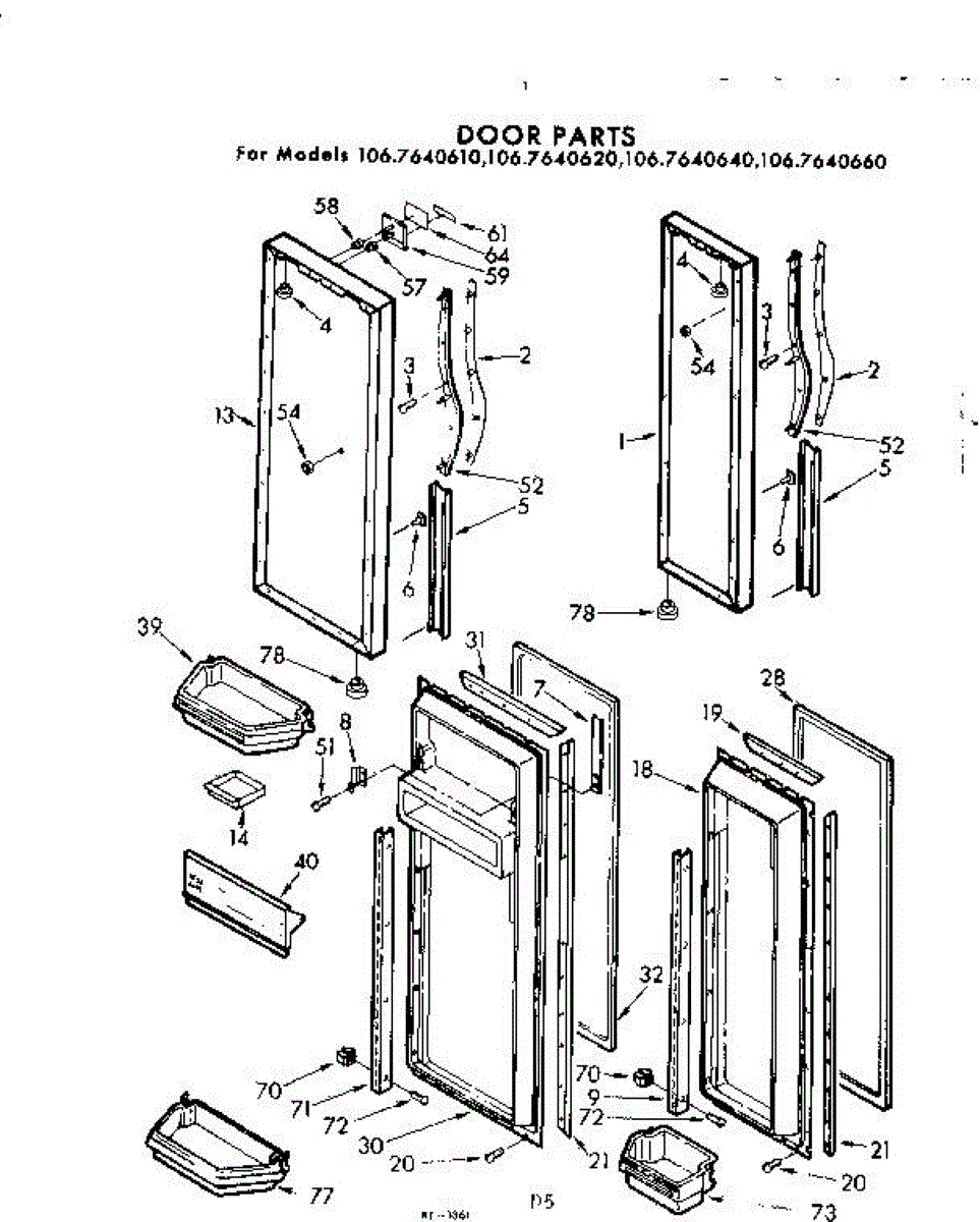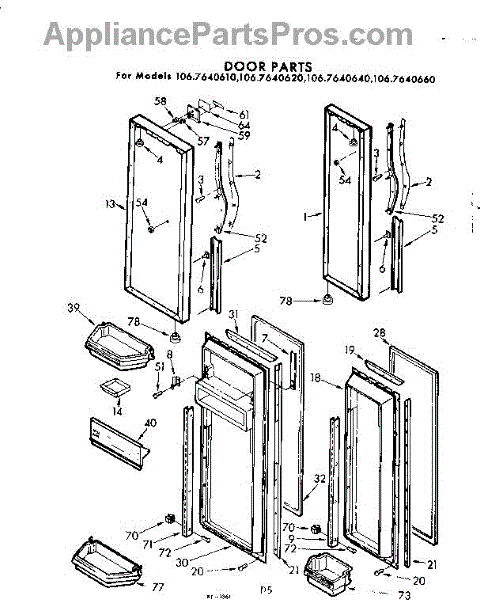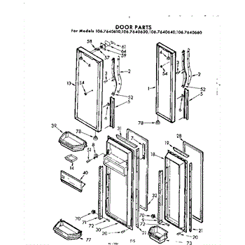 Parts for Kenmore 106.7640640 (1067640640, 106 7640640): Door Parts