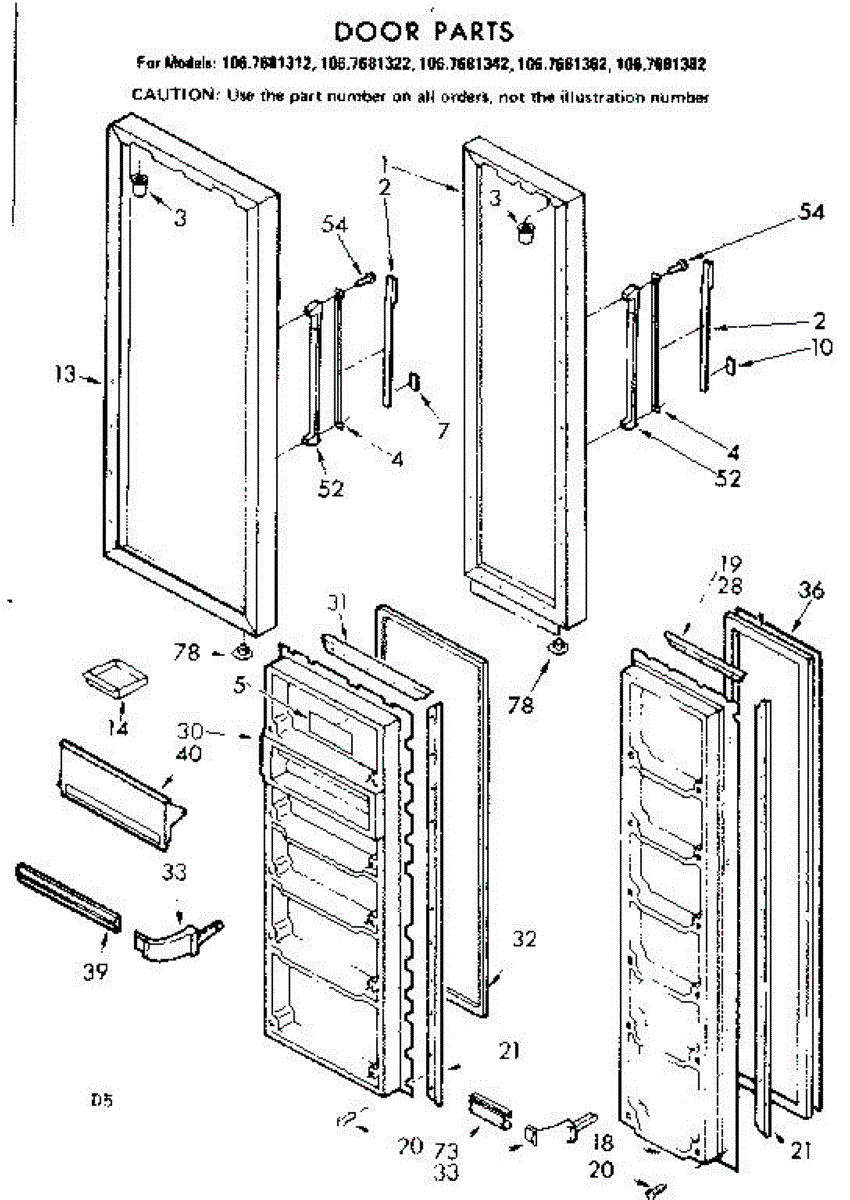 Parts for Kenmore 106.7681312 (1067681312, 106 7681312): Door Parts