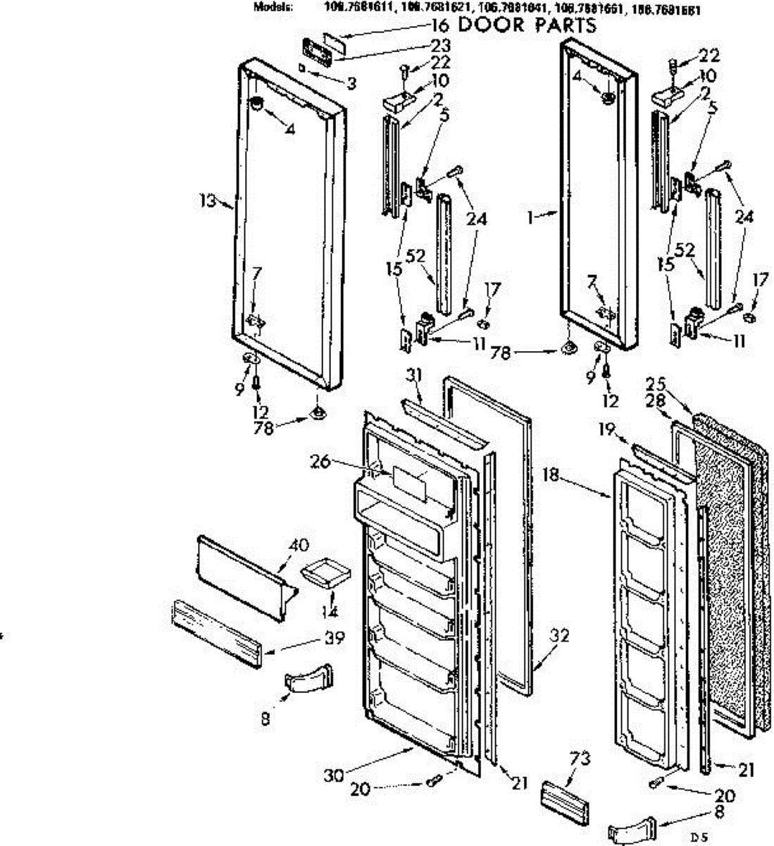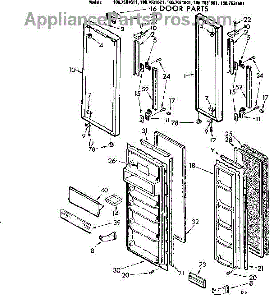 Parts for Kenmore 106.7681681 (1067681681, 106 7681681): Door Parts
