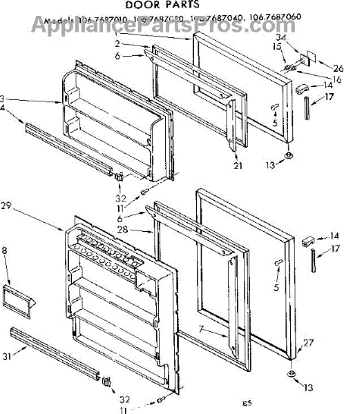 Parts for Kenmore 106.7687020 (1067687020, 106 7687020): Door Parts