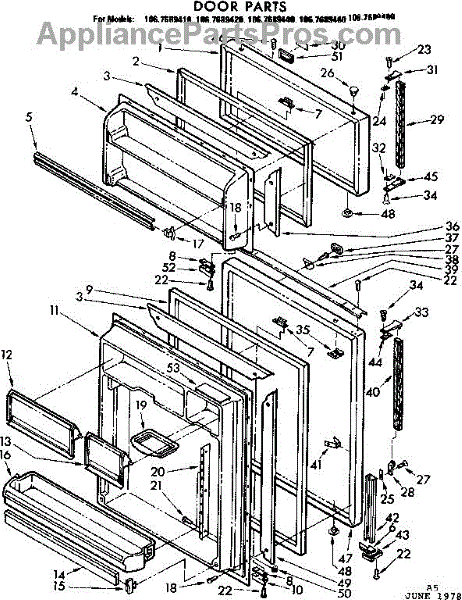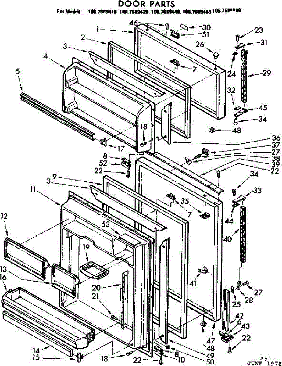 Parts for Kenmore 106.7689410 (1067689410, 106 7689410): Door Parts