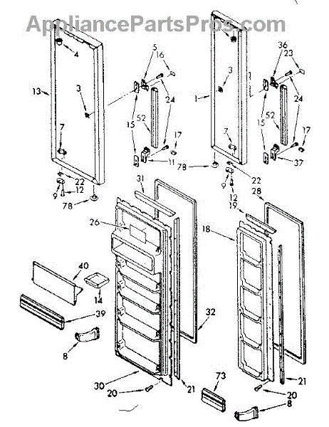 This freezer door gasket creates a tight seal around the door to keep cold air in and humid air out. Replacing a worn gasket restores proper temperature control, reduces frost, and helps the door close and seal correctly.