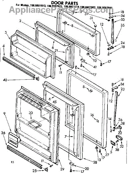 Parts for Kenmore 106.8607923 (1068607923, 106 8607923): Door Parts