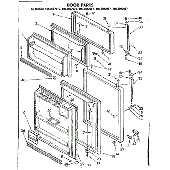 This freezer door gasket seals the door to the cabinet to keep cold air in and humid air out. Replacing a worn gasket restores a proper seal, helping maintain temperature and reducing frost and condensation around the door.